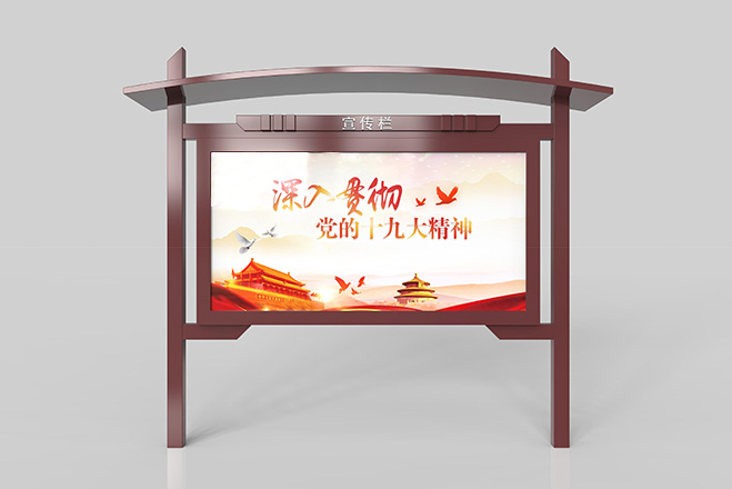 宣傳欄是一種VI應(yīng)用,是組織或企業(yè)單位等進(jìn)行自我宣傳的有效手段,常被應(yīng)用于街道,工廠等公共場(chǎng)所;一般采用不銹鋼為框架,鋼化玻璃或者耐力板為面板,鋁合金為頂棚,面板可以打開更換宣傳畫面。現(xiàn)如今,宣傳欄廣泛應(yīng)用于學(xué)校、小區(qū)、會(huì)議館、展廳等各個(gè)場(chǎng)地。